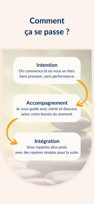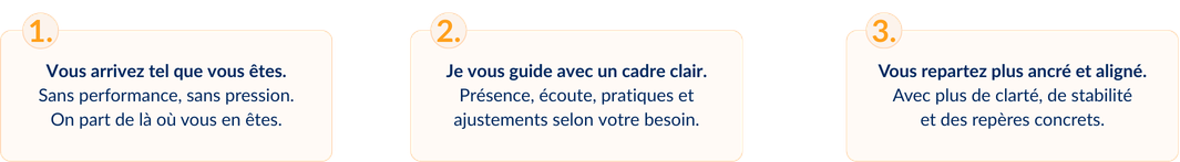 🔹 Je vous guide avec un cadre clair : Présence, écoute, pratiques et ajustements selon votre besoin.