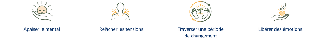 🔹 Apaiser le mental 🔹 Relâcher les tensions 🔹 Traverser une période de changement 🔹 Libérer des émotions